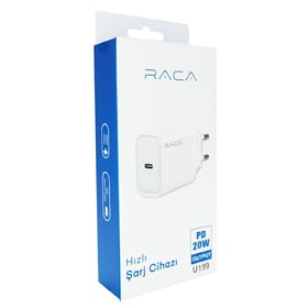 Raca U199, modern akıllı telefon ve tabletlerin hızlı şarj gereksinimlerini karşılamak üzere tasarlanmış, güçlü ve kompakt bir şarj adaptörüdür. Sahip olduğu **20 Watt PD (Power Delivery) 3.0** teknolojisi, uyumlu cihazları (özellikle iPhone 8 ve üzeri modelleri) standart 5W adaptörlere göre çok daha kısa sürede şarj ederek bataryanın %50 doluluğa yaklaşık 30 dakikada ulaşmasını sağlar. Tek Type-C çıkış portu üzerinden 5V, 9V ve 12V gibi farklı voltaj seviyelerinde çıkış sağlayarak bağlı cihazın ihtiyacına göre otomatik güç ayarı yapar. Evrensel AC 100-240V giriş desteği sayesinde dünya genelinde priz dönüştürücü ile rahatça kullanılabilir.