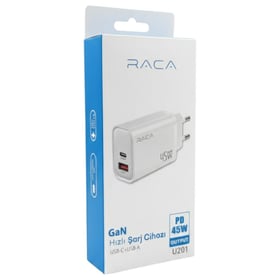 Raca U201 GaN 45 Watt (Type-C PD + USB QC) Yüksek Detaylı Hızlı Şarj Adaptörü - Beyaz Özellikleri