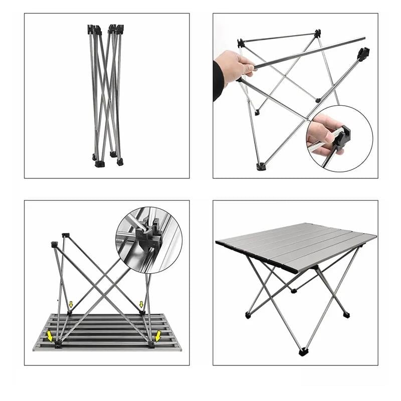 Kamp masası, aletsiz bir şekilde sadece bir dakika içinde kurulabilir. Olağanüstü tasarım, masa üstünü ve bacakları basit ve sağlam bir şekilde birleştirir, böylece hızlı ve sorunsuz bir kurulum sağlar.